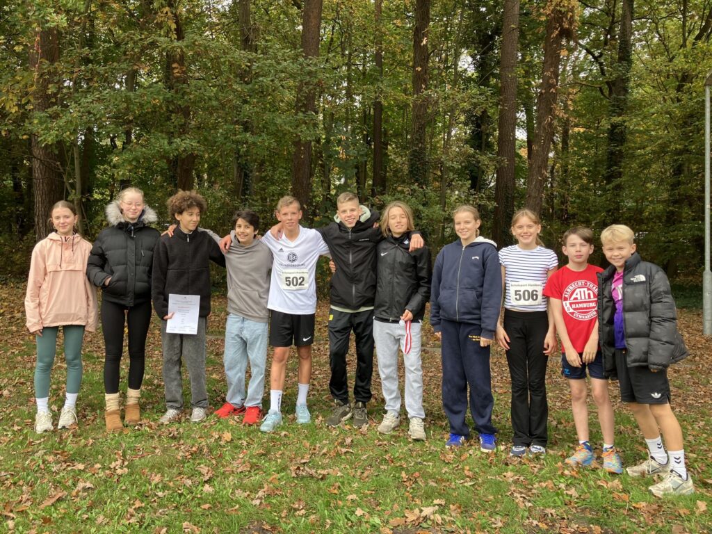 Auch in diesem Jahr haben wieder die besten Läuferinnen und Läufer der Schule den langen Weg zum Jägerhof in Hausbruch auf sich genommen. Bei bestem Oktoberwetter konnten nicht nur alle Starterinnen und Starter der Schule den herausfordernden Lauf erfolgreich bewältigen, sondern erreichten dabei auch herausragende Zeiten und Platzierungen. Es war großartig zu beobachten, wie sich unsere Teilnehmerinnen und Teilnehmer gegenseitig angefeuert und unterstützt haben. Besonders hervorheben sind Leo aus der 8d als 2., Lian aus der 9e als 4. und Youness aus der 7a als 6. von jeweils über 40 Startern. Im nächsten Jahr sind wir auf jeden Fall wieder dabei!