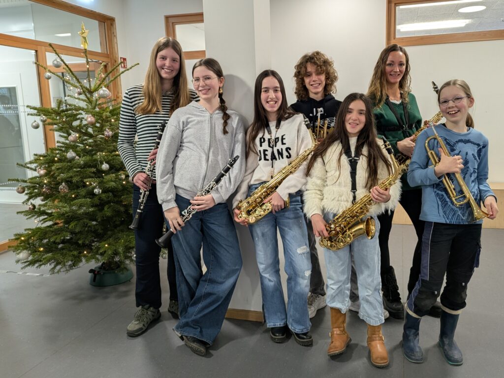 Für Adventsstimmung kurz vor den Weihnachtsferien sorgte am 12.12. ein Ensemble der ehemaligen Bläserklasse 7b. Bei einem Pausenkonzert ließen die „Christmas Winds“ mit Trompeten, Saxophonen und Klarinetten weihnachtliche Klänge ertönen. Vielen Dank für die schöne Musik!