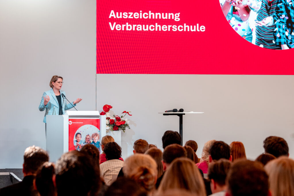 Das Albrecht-Thaer-Gymnasium wurde am 23.03.2026 bereits zum 5. Mal in Folge als Verbraucherschule Gold ausgezeichnet. In festlichem Rahmen wurde die Urkunde von der Schirmherrin der Auszeichnung, Dr. Stefanie Hubig, Bundesministerin der Justiz und für Verbraucherschutz, gemeinsam mit Ramona Popp, der Vorständin der Verbraucherzentrale Bundesverband, verliehen. Ausgezeichnet wurden wir für unser Engagement in der Verbraucherbildung in den Bereichen Ernährung, Medien, Finanzen und Nachhaltigkeit. Unsere Schüler*innen erlernen Alltagskompetenzen in den genannten Bereichen in  Unterrichtsvorhaben in den verschiedenen Klassenstufen und zentral in der Projektwoche Nachhaltigkeit und Verantwortung. Weitere Informationen findet ihr/finden Sie auf der Website der Verbraucherzentrale.