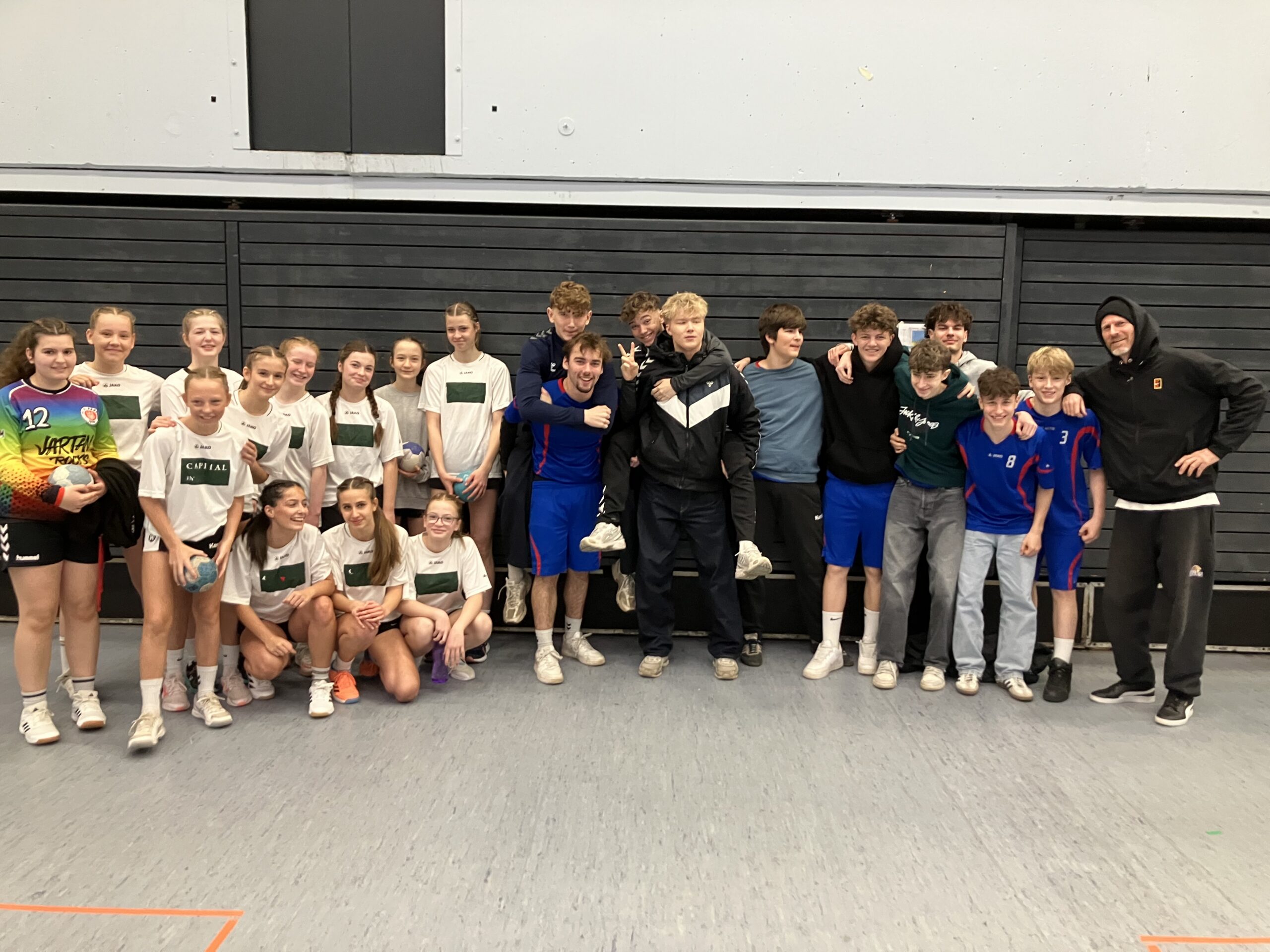 Drei Handballteams des AThs nahmen am Nikolausturnier am 9.12.25 teil. Mit der Unterstützung älterer Schüler als Coaches repräsentierten unsere jüngsten Teilnehmer:innen das ATh großartig beim traditionellen Nikolausturnier in der Hamburger Sporthalle. Dort durften sie ein großes Turnier erleben und viele wertvolle Erfahrungen für die Zukunft sammeln. Vielen Dank auch an die Begleitungen Herrn Raub und Herrn Weiss!